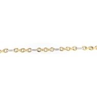 Βραχιόλι γυναικείο από κίτρινο και λευκό χρυσό σε 14 καράτια.Αποτελείται από οβάλ κρίκους σε κίτρινο χρυσό που περνούν ο ένας μέσα στον άλλο.Κάθε πέντε κρίκους παρεμβάλλεται ένας μεγαλύτερος κρίκος από λευκόχρυσο με το ίδιο σχήμα.