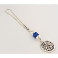 Γούρι για αυτοκίνητο από ασήμι 925 βαθμών.Αποτελείται από αλυσίδα στην οποία προσαρμόζεται μοτίφ με ανάγλυφη τη μορφή της ΠΑΝΑΓΙΑΣ βαστάζουσαςτον ΙΗΣΟΥ ΧΡΙΣΤΟ.Το μοτίφ έχει κυκλικό σχήμα και διακοσμείται περιμετρικά με σκάλισμα.Ανάμεσα στο μοτίφ και την αλυσίδα παρεμβάλλονται δύο ασημένιες μπίλιες οι οποίες πλαισιώνουν μια συνθετική πέτρα σε μπλε χρώμα.