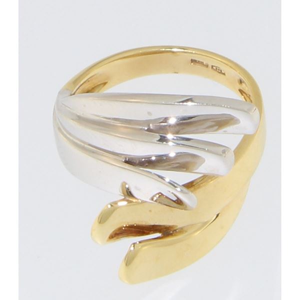 Γυναικείο δαχτυλίδι από λευκό και κίτρινο χρυσό 14 καρατίων με λουστρέ φινίρισμα.Το μέγεθος του προσαρμόζεται.