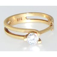 Γυναικείο μονόπετρο δαχτυλίδι σε κίτρινο χρυσό 14 καρατίων με λουστρέ φινίρισμα.Αποτελείται από ένα κεντρικό ζιρκόν το οποίο συγκρατείται με τριπλό στήριγμα στο οποίο καταλήγει το σχέδιο της βάσης του δαχτυλιδίου.Το μέγεθος προσαρμόζεται.
