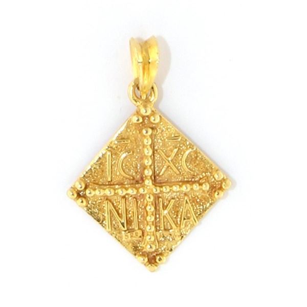 Κωνσταντινάτο σε κίτρινο χρυσό 14 καρατίων.Έχει δύο όψεις.Στη μία απεικονίζεται το σύμβολο του Σταυρού με τα αρχικά IC/XC/NI/KA στα τέσσερα άκρα.Στην άλλη όψη απεικονίζονται οι μορφές των Αγίων Κωνσταντίνου και Ελένης .Και οι δύο επικονίσεις είναι ανάγλυφες