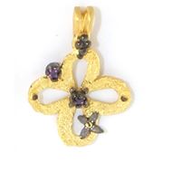 Μενταγιόν από κίτρινο ματ χρυσό 14 καρατίων τετράφυλλου σχήματος διακοσμημένο με σπινέλιο.