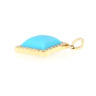 Μενταγιόν σε κίτρινο χρυσό 14 καρατίων αποτελούμενο από μια πέτρα τυρκουάζ πλαισιωμένη με χρυσό διακοσμημένο με ζιρκόν.