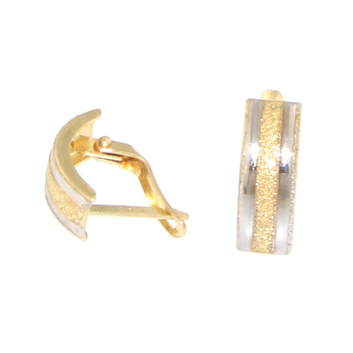 Σκουλαρίκια καρφωτά σε συνδυασμό κίτρινου και λευκού χρυσού 14 καρατίων.Αποτελούνται από μία λωρίδα χρυσού σε σχήμα ημικύκλιου με λουστρέ φινίρισμα και διαμαντάρισμα στο μέσον.