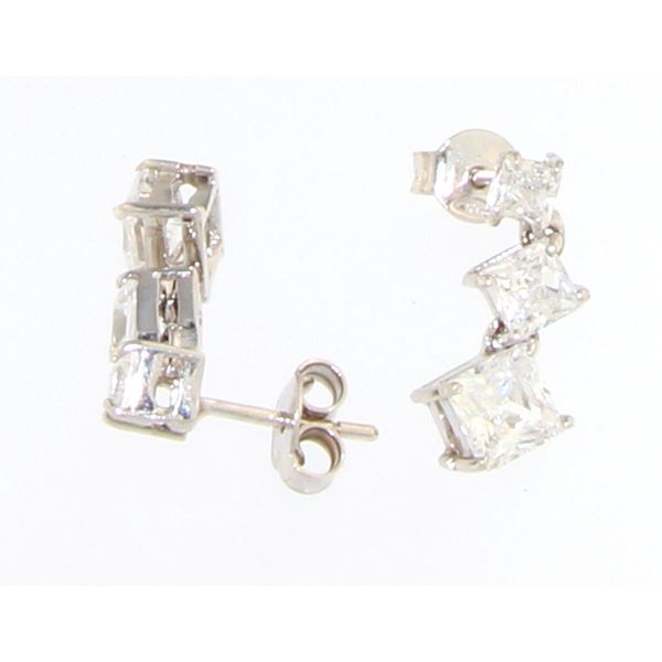 Σκουλαρίκια κρεμαστά σε λευκό χρυσο 14 καρατίων.Αποτελούνται απο τρία ζιρκόν που πλαισιώνονται με λευκόχρυσο σε σχήμα ρόμβου και ενώνονται μετξύ τους ώστε να κινούνται